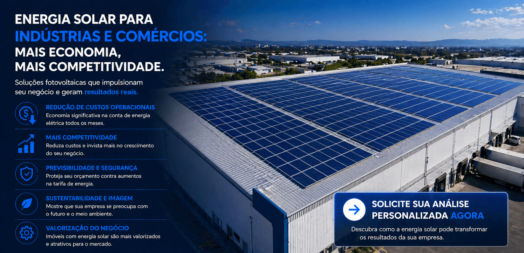 Reduza custos operacionais, aumente sua competitividade e tenha mais previsibilidade nos gastos com energia. Projetos pensados para o seu negócio evoluir com segurança e sustentabilidade.